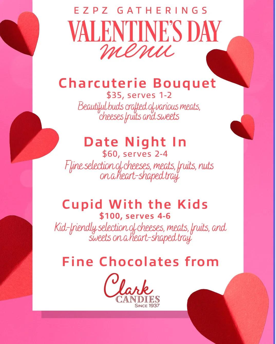 We are teaming up with my dear friends who’ve taken over their family-owned Clark’s Candies in Terentum, PA. Use this link to order chocolates from their decadent menu, and pick up your order at EZPZ Gatherings when you pick up your Gathering Board!